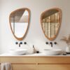 Asymmetrical Mirror Wood, 19.5″ x 30.5″ Irregular Wall Mirror Wood Framed Mirror Decor for Bathroom Living Room Bedroom Entryway