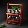 Foldable Wooden Kitchen Organizer Rack | Spice Rack & Storage Shelf | Kitchen Countertop – Mahogany Double Tray for Home