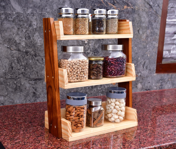Natural Wood/Wooden Countertop Multipurpose Kitchen Storage Organizer/Kitchen Shelf/Wooden Shelves/Spice Rack/Desk Organizer – 3 Tier
