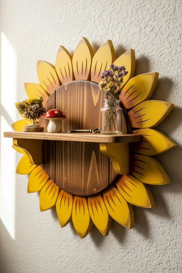 Sunflower Wooden Wall Shelf