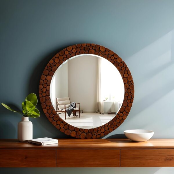 Woden Round Mirror with Uniqe Design