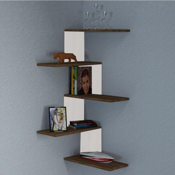 Wood 5-Tier Corner Shelves,Floating Corner Shelf,Wall Organizer,Easy-to-Assemble Tiered Wall Mount Shelves for Bedrooms,Bathroom Shelves,Kitchen,Offices,& Living Rooms (Brown&White)
