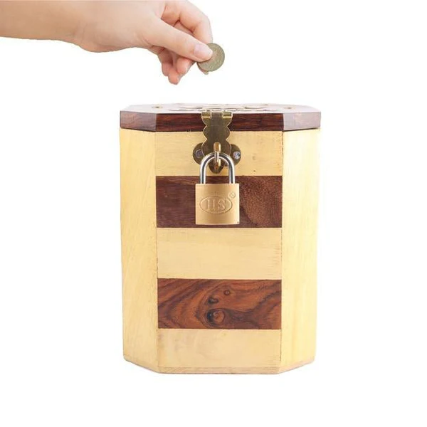 Shriji Crafts brings you a beautifully designed wooden coin to keep your spare change and savings safe. It has a decorative design and is a great handmade gift for kids and for adults. It can be used to keep your money and trinkets. It is a great way to make your kids of any age learn about savings.
