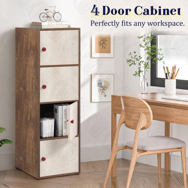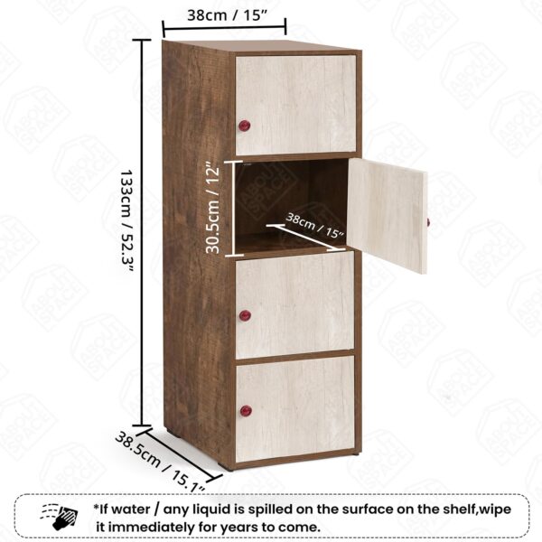 Wooden Cabinet – 4 Tier Storage Cabinet for Living Room with Magnetic Door, Space Saving Book Self for Home, Engineered Wood Kitchen Crockery Unit (Walnut – L 38 x B 38.5 x H 133 cm)