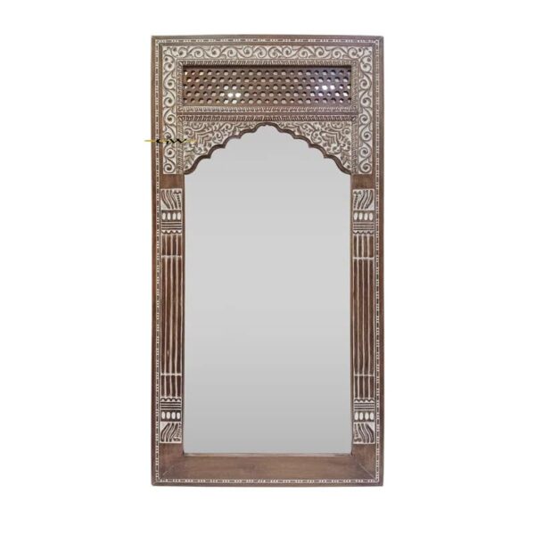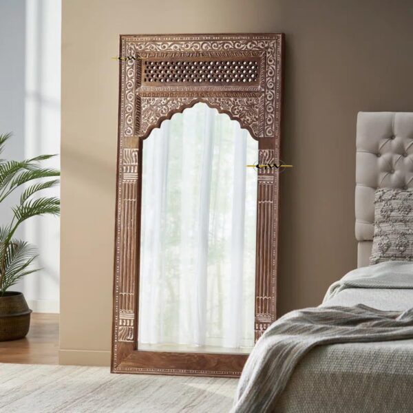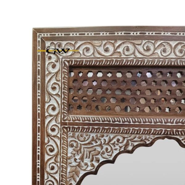 Wooden Carved Mirror Frame | Wall Hanging | Wooden Jharokha | Solid Wood | Horizontal, Vertical, Framed, Rectangular Without Mirror 6×3 FT