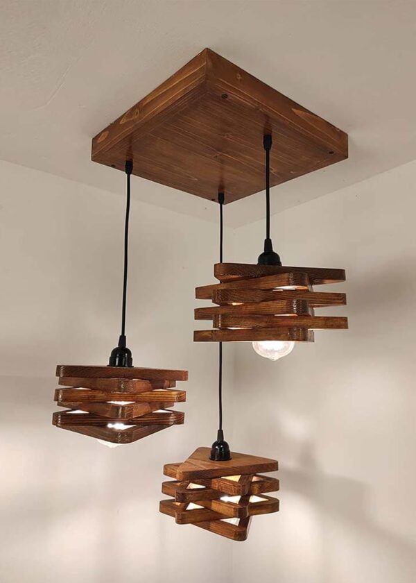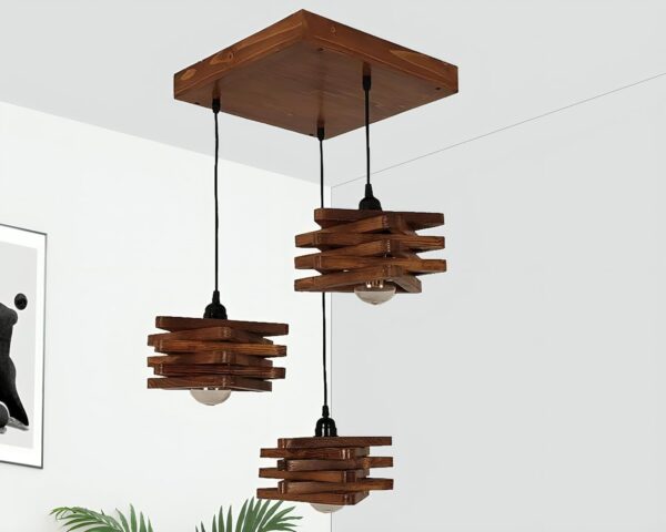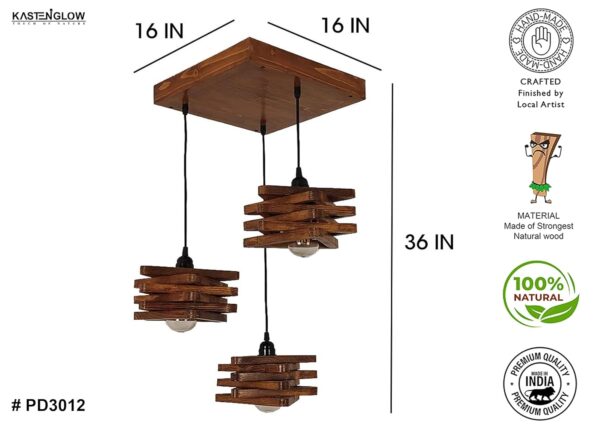 Wooden Ceiling Lights Brown Adjustable Pandent Light Wooden Paradise Handcrafted Ceiling Hanging Lamp for Home, Living Room, Kitchen, Bedroom, Study, Resturant