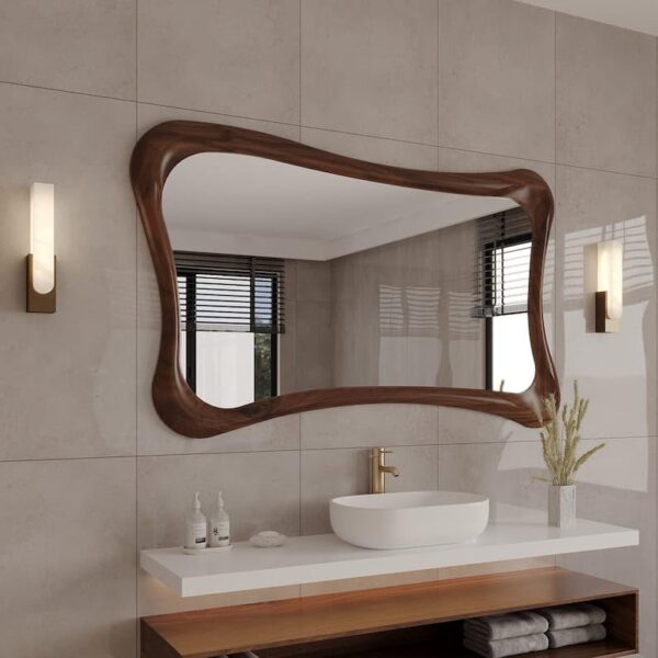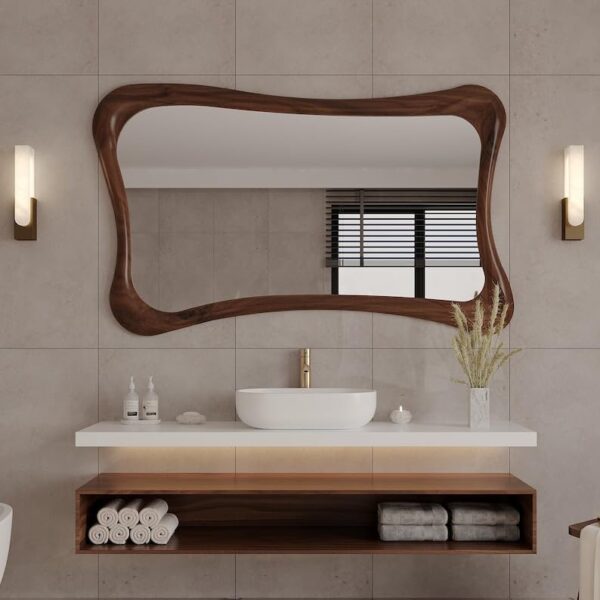 Wooden Framed Wall Mirror Frame Full Lenth, Curved Design, 60 x 102 cm Brown for Bedroom Livingroom (Only Frame Without Mirror) (Irregular Frame 40 Inch ×2 feet)