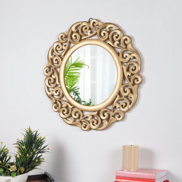 Wooden Gold Color 20″x20″ Pack of One French Style Elegantly Hand Crafted Floral Carving Mirror for Home and Office Decor TUSMR68