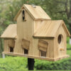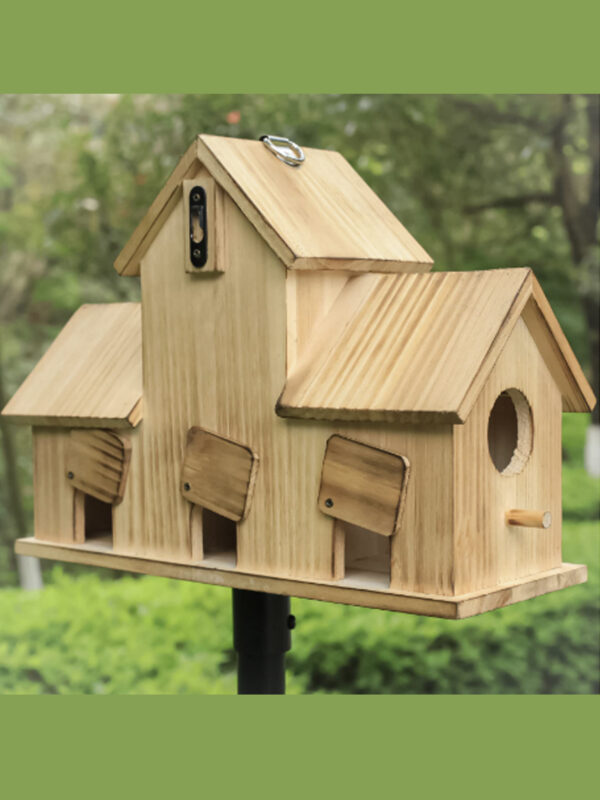 Create a cozy retreat for your feathered friends with this Handcrafted Wooden Multi-Chamber Birdhouse. Featuring a rustic cottage-style design with three distinct nesting compartments, this birdhouse is a stunning addition to any outdoor space.
