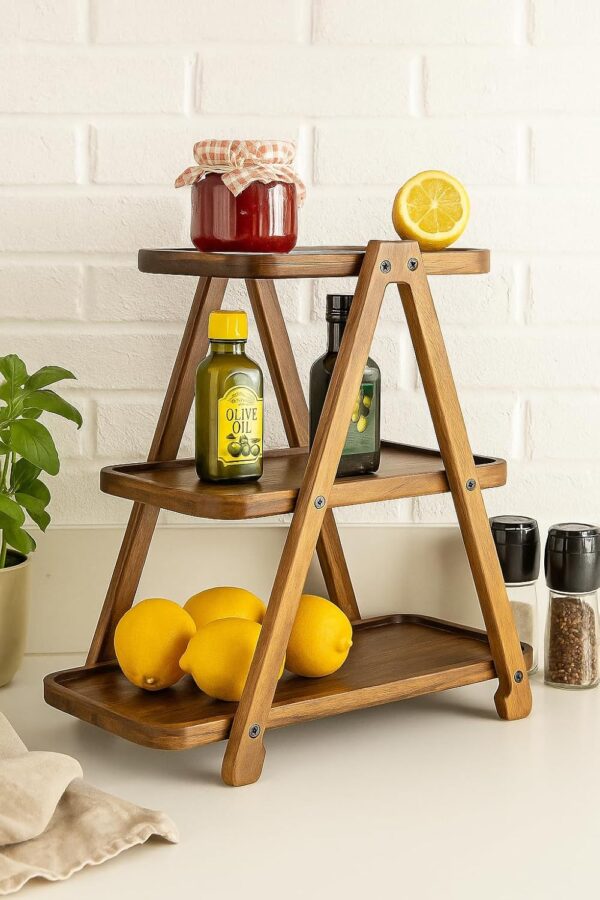 Wooden Kitchen Rack – Handcrafted Mango Wood Countertop Organizer Shelf for Spice Jars, Mugs, Containers & Daily Kitchen Essentials
