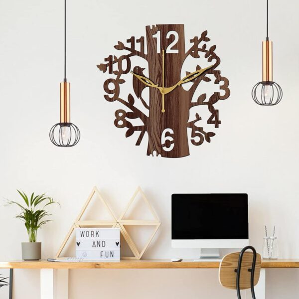 Wooden Mdf Tree Shape English Numeral With Bird Analog Wall Clock Without Glass (Brown, 30Cm X 30Cm)-057
