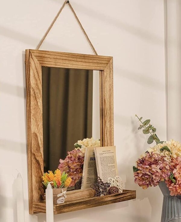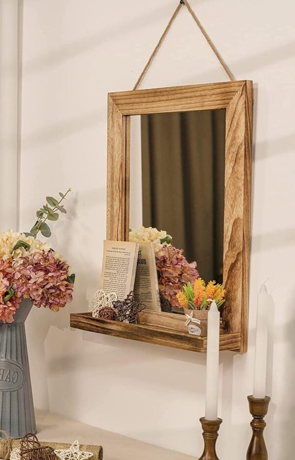 Wooden Rectangular Wall Mirror For Bathroom, Bedroom, Living Room, Vanity Mirror/Dressing Mirror For Makeup, 20X16 Inch (Rustic Brown)