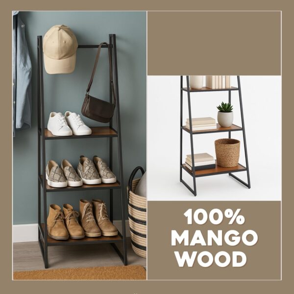 Wooden Shelf | Freestanding Shelves, Mango Wood & Black | Home, Bedroom, Living Room, Study Room | Mango Wood Book Rack | Organizer | Storage | Multipurpose Home Decor Storage Rack