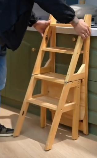 Wooden stool with step