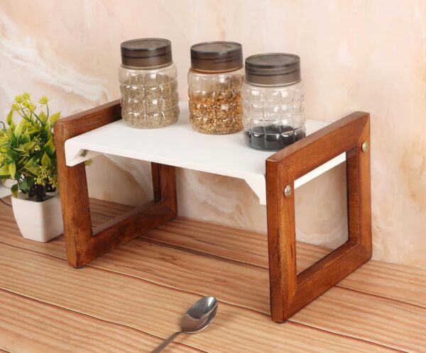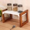 Wooden Triangular Spice Rack – 2-Tier Kitchen Countertop Organizer with Jars & Bottles Holder | Stylish Kitchen Storage & Décor (Single Tier)
