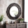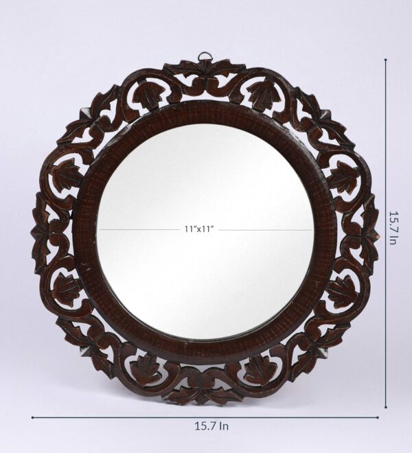 Wooden Walnut Color 16″x16″ Pack of One French Style Elegantly Hand Crafted Floral Carving Mirror for Home and Office Decor TUSMR44