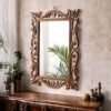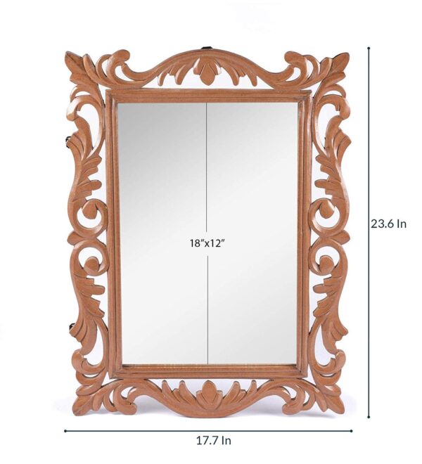 Wooden Walnut Color 24″x18″ Pack of One Victorian Style Elegantly Hand Crafted Floral Carving Mirror for Home and Office Décor TUSMR36